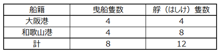 | 船籍 | 曳船隻数 | 艀(はしけ)隻数 | |||