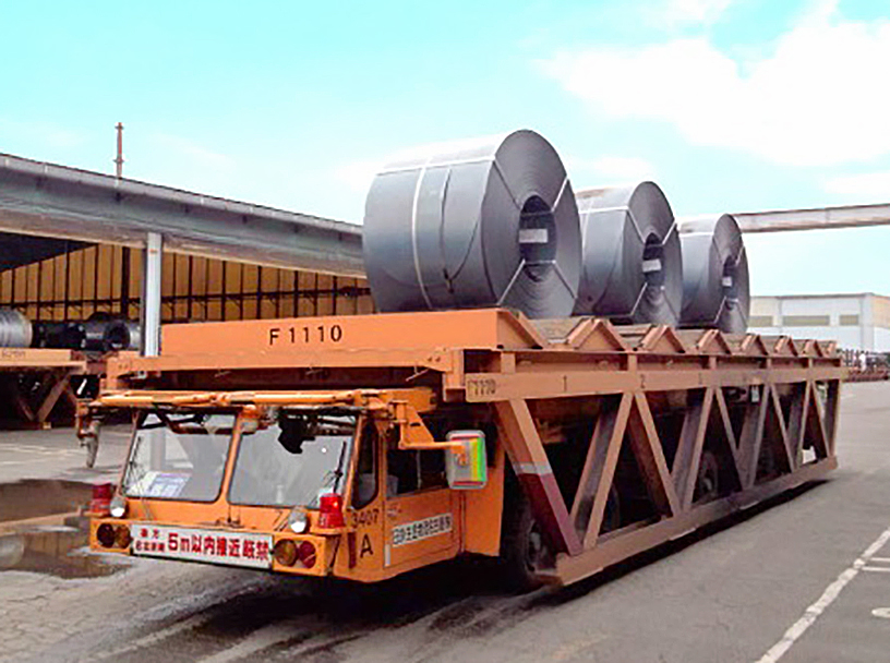- キャリアカーを運転し、名古屋製鉄所で製品や中間材の工場間輸送、倉庫間輸送を行います。
