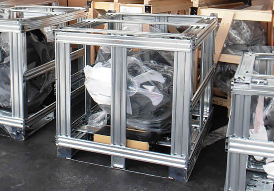 近年の環境問題から、長年培った包装技術に顧客ニーズを融合し、環境への配慮から、ライトパレット技術を応用した軽量で安価なスチールボックスパレットを開発しました。 スチールボックスパレットは、ボルト・釘を使用しない為、組立・解体が容易に出来、且つ耐久性に優れ繰り返し使用出来るリターナブルな製品です。 サイズ・規格・荷重・用途に応じて製作・販売致します。