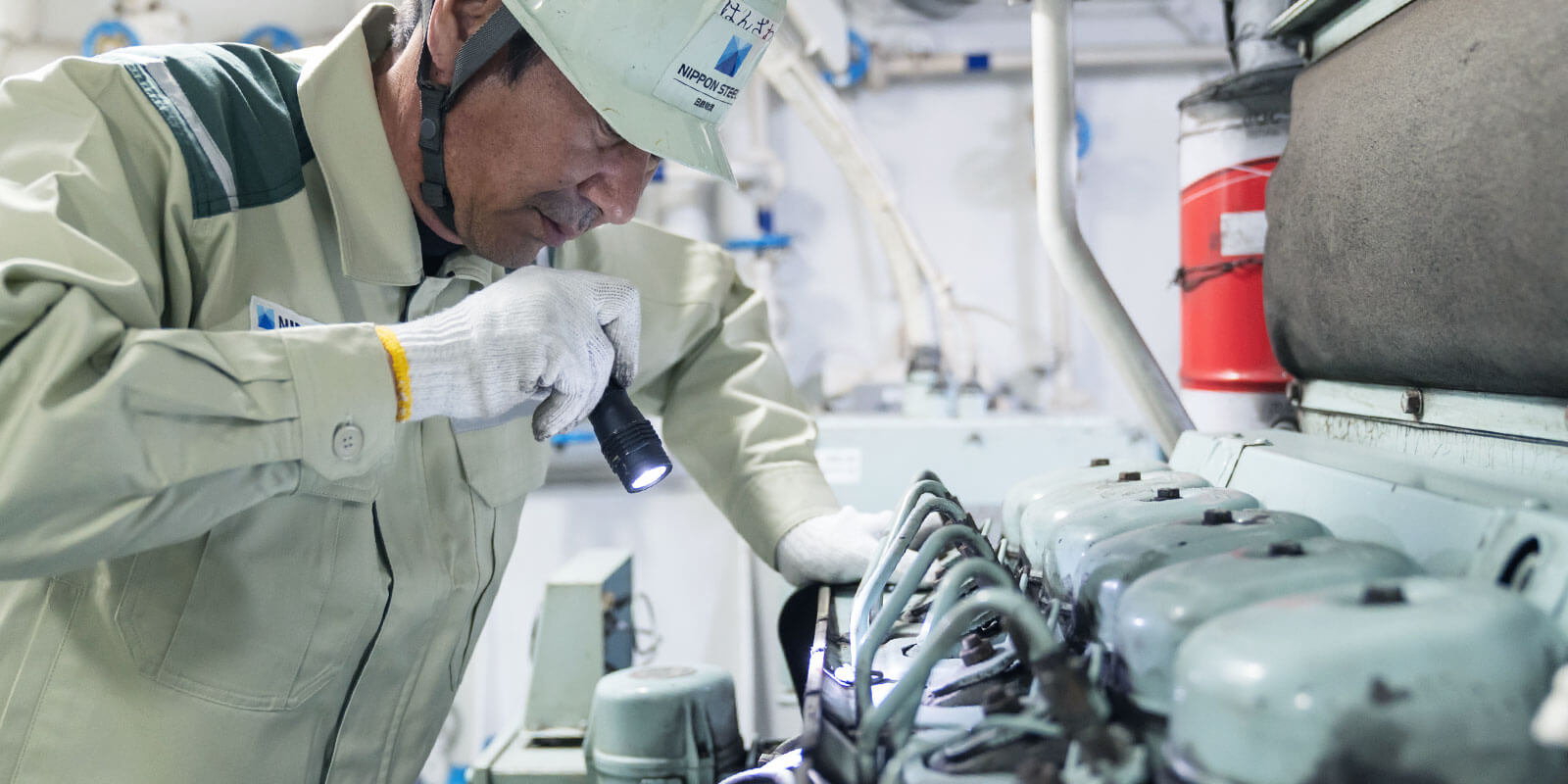 機関部の保守・点検・運転を行います。船にはエンジン・ボイラー・発電機などさまざまな機械や装置が搭載されています。船の安全航海のために、これらの管理・メンテナンスを行うのが機関士です。