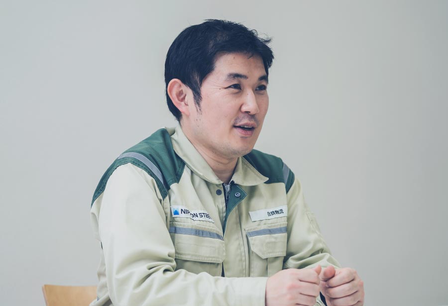 大学時代に物流について学んだことから、物流業界を中心に就職活動を行う。橋梁などを扱うダイナミックな物流に魅力を感じて日鉄物流に入社。海上輸送や陸上輸送に携わる複数部署を経験した後、一貫物流最適化推進部を経て、東日本支店君津地区に出向し、現職に至る。