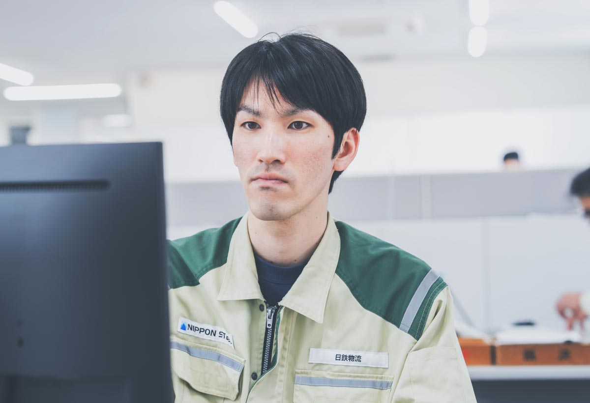 物流業界に絞って就職活動を展開するなか、合同説明会で日鉄物流に出会う。入社後は、名古屋支店の原料物流部に配属。その後、日本製鉄に2年間出向し、現在は名古屋支店の製品物流部 作業調整課で鉄鋼物流の最前線を担う。
