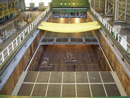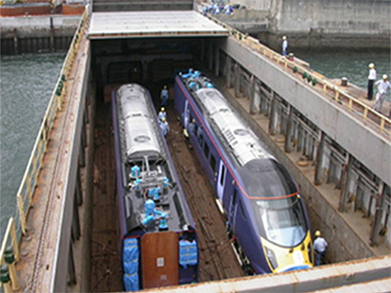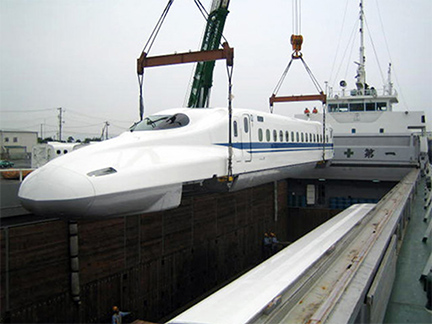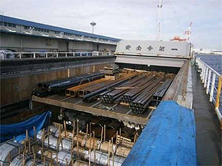 艙内ボトムに1列あるいは2列のピースが設置されており、製品を固縛できるので、橋梁などの長尺品を効率的に積載可能です。