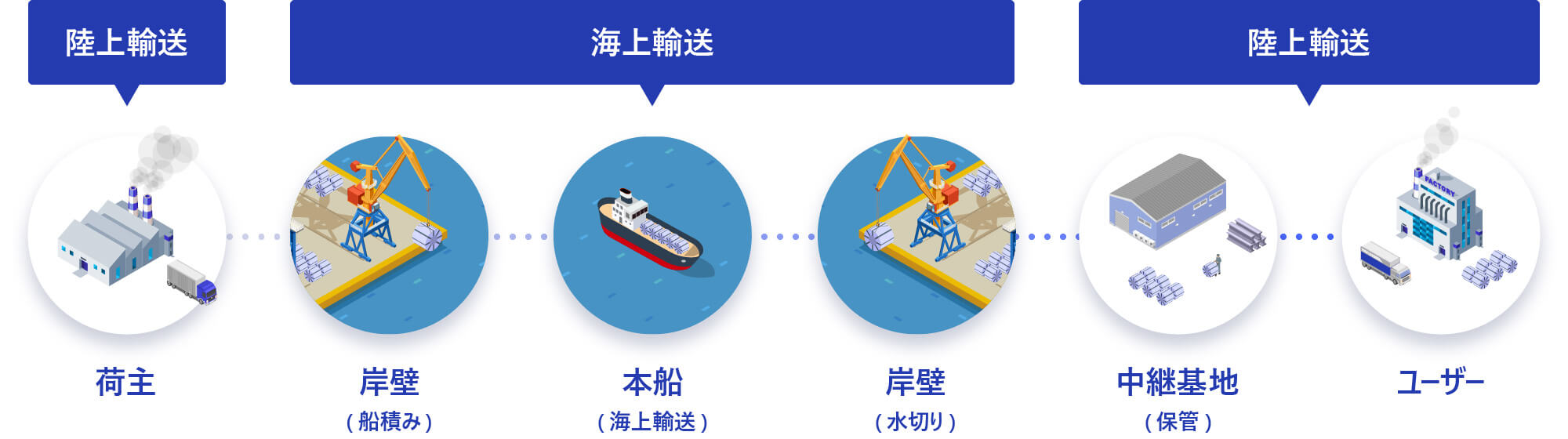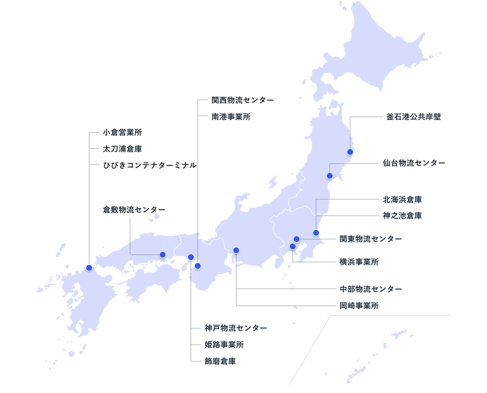 全国の物流拠点を活用し、岸壁で荷揚げ・倉庫保管・出庫など